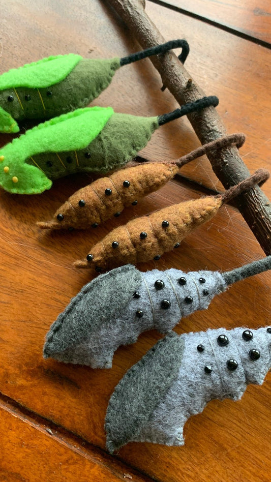 Felted Banana Slug Wool Sculpture on Wood Disc