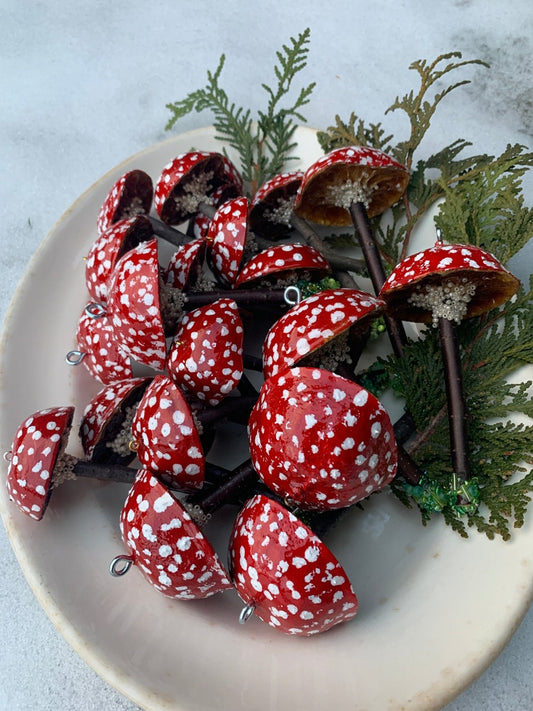 Twin textile mushrooms handmade alike to split with your bestie; Gift one/Keep...