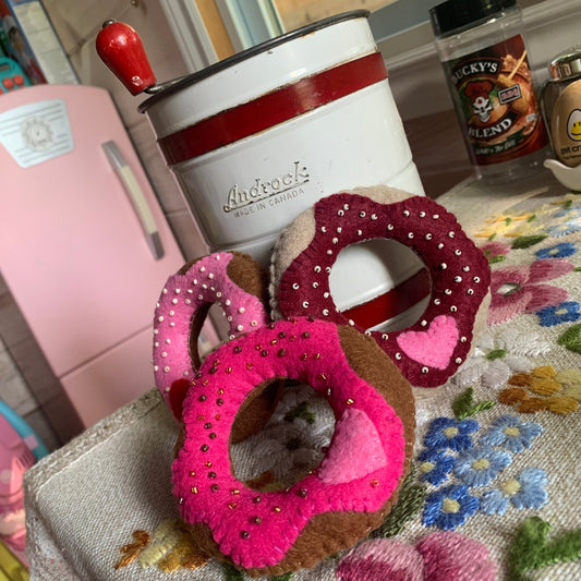 Twin textile mushrooms handmade alike to split with your bestie; Gift one/Keep...
