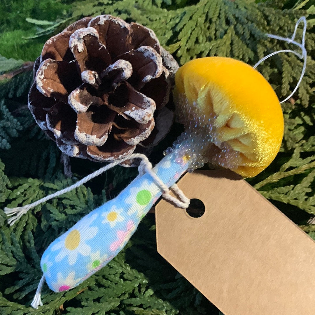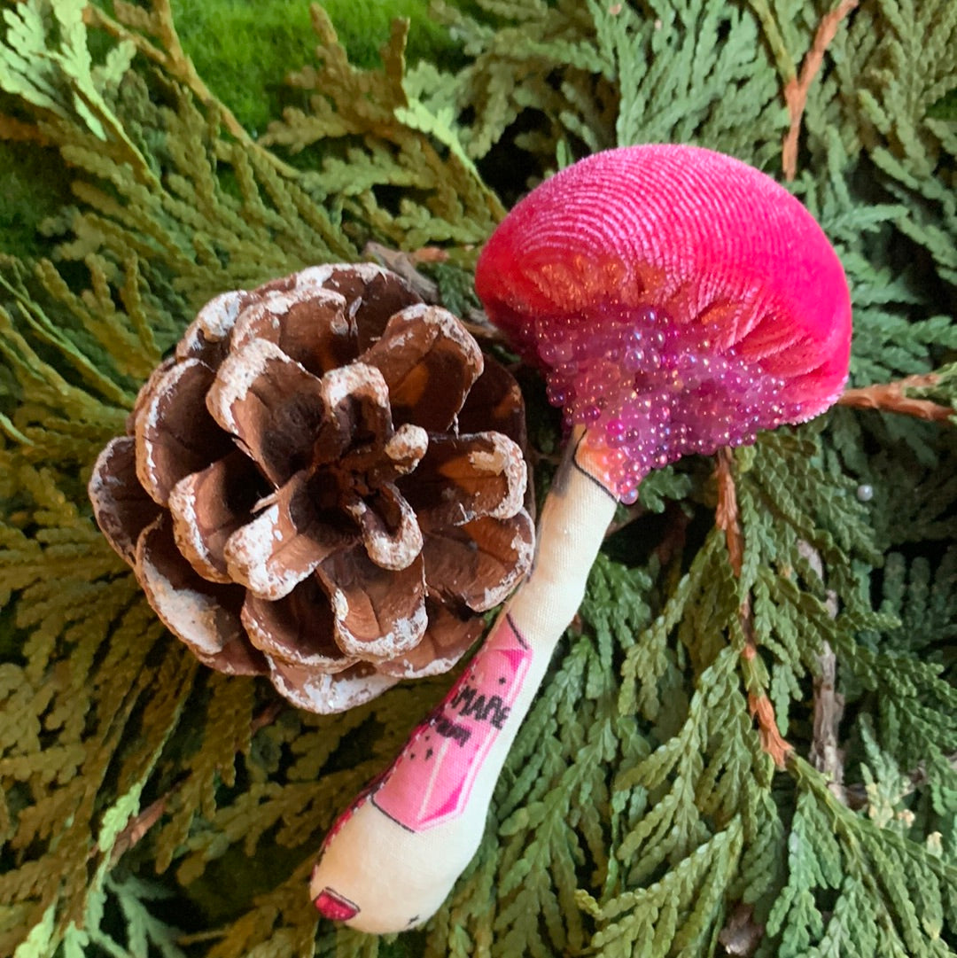 Many of our designs include material and finds from thrift stores, second hand grabs or items that we forage in our community to make you ART.