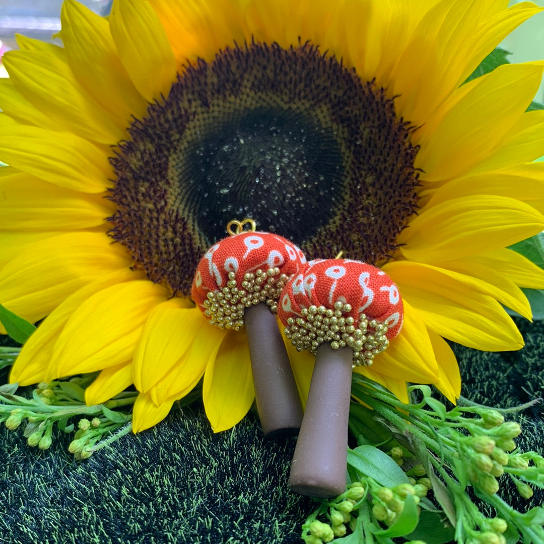 Cotton Print Mushroom Earrings